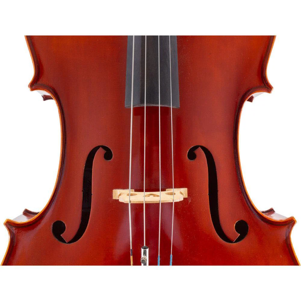 Workshop level instrument with high quality fittings, Jargar and Larsen Aurora strings and brazilwood bow. Supplied with a compressed foam semi-rigid lightweight case with rucksack straps made by Eastman - available separately here.